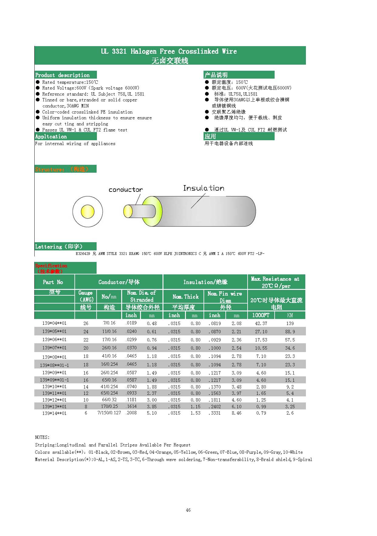 UL  3321  Halogen  Free  Crosslinked  Wire