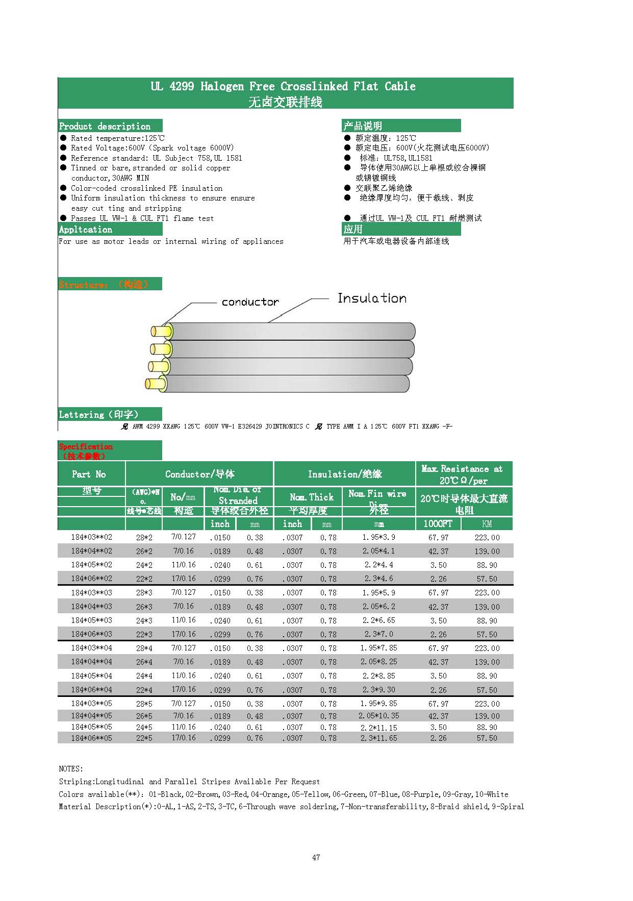 UL  4299  Halogen  Free  Crosslinked  Flat  Cable