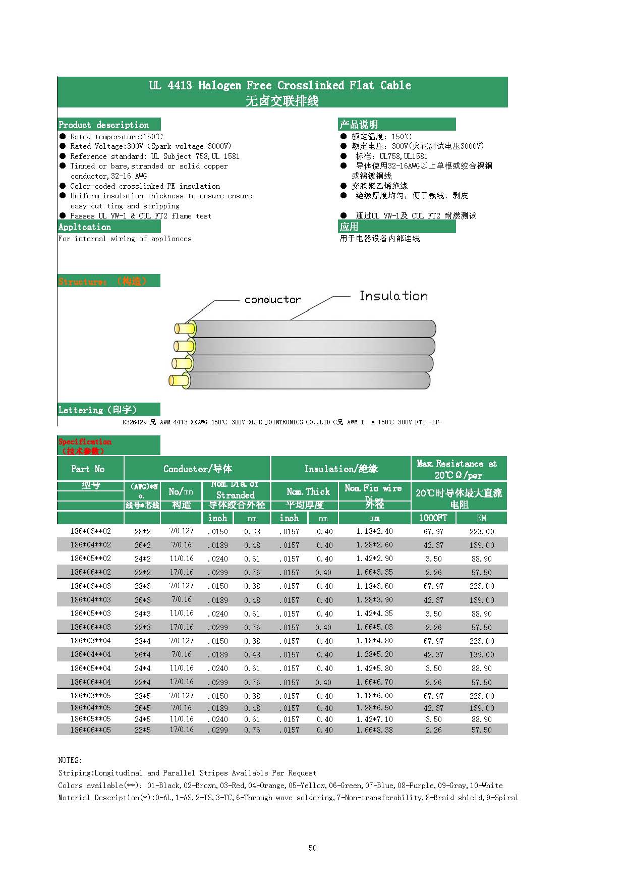 UL  4413  Halogen  Free  Crosslinked  Flat  Cable