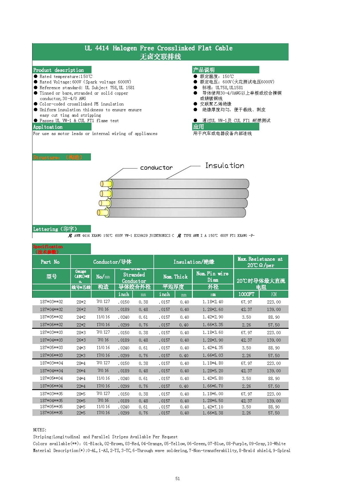 UL  4414  Halogen  Free  Crosslinked  Flat  Cable