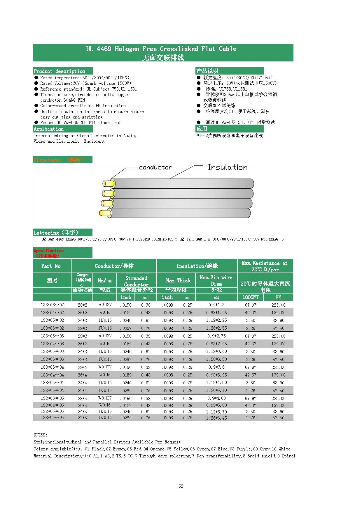 UL  4469  Halogen  Free  Crosslinked  Flat  Cable