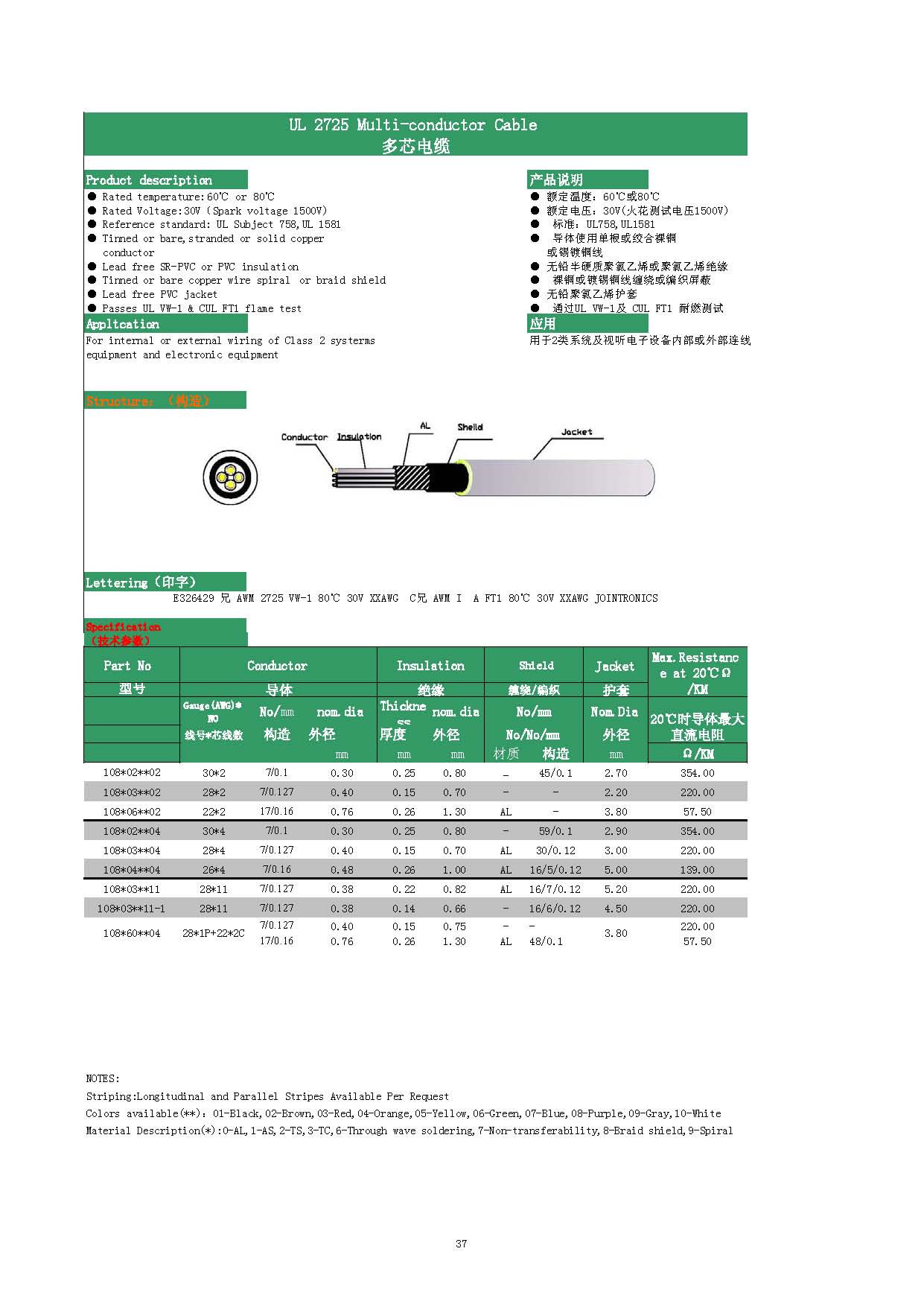 UL  2725  Multi-Conductor  Cable
