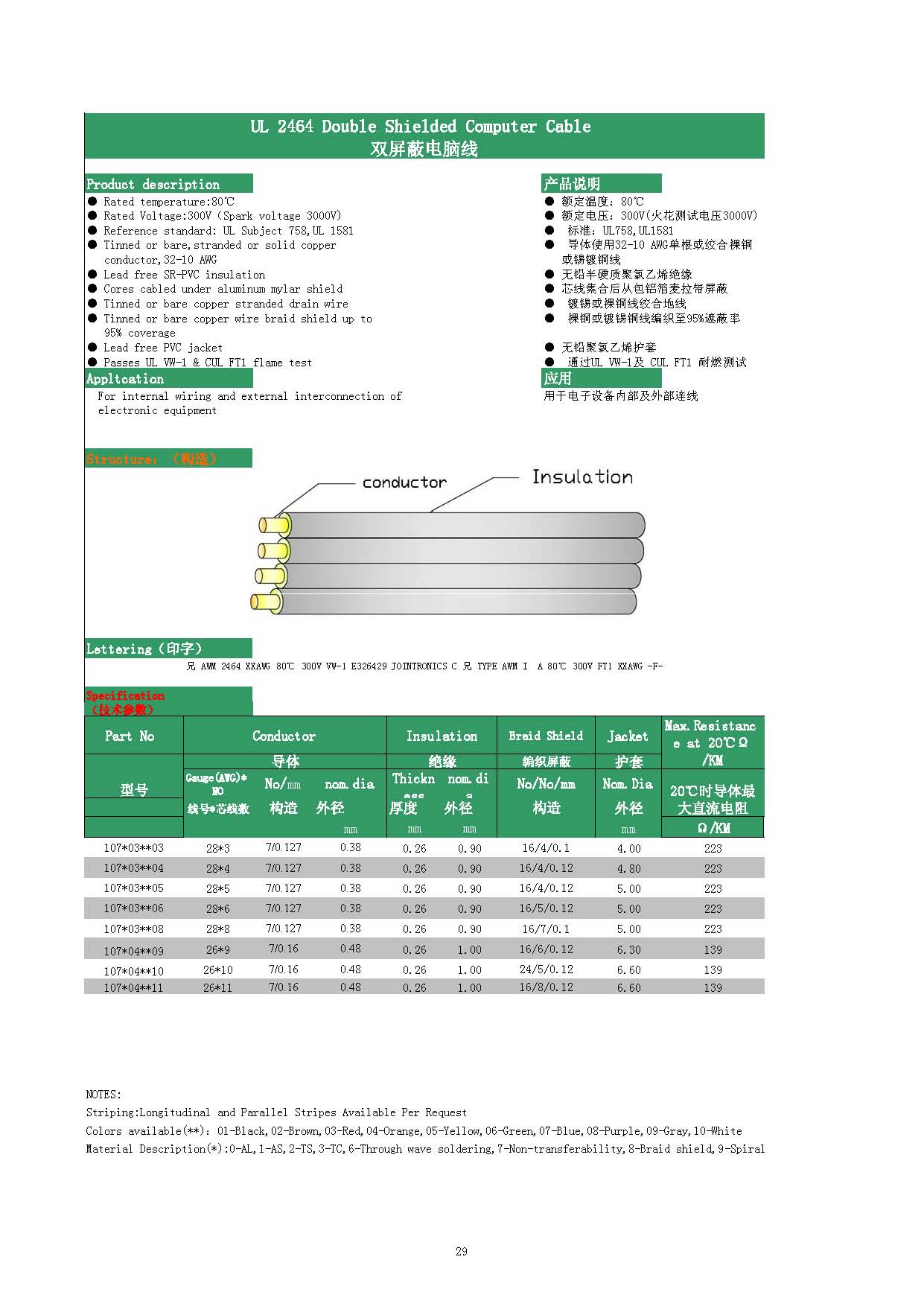 UL  2464  Double  Shielded  Computer  Cable