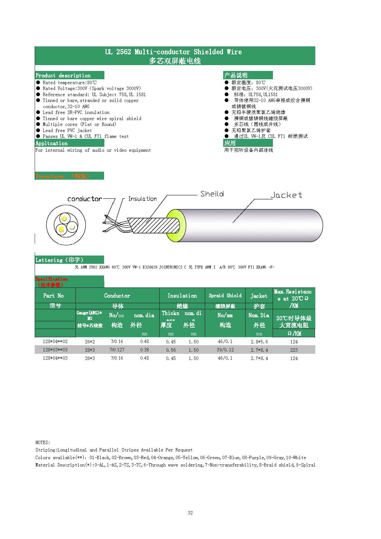 UL  2562  Multi-Conductor  Shielded  Wire